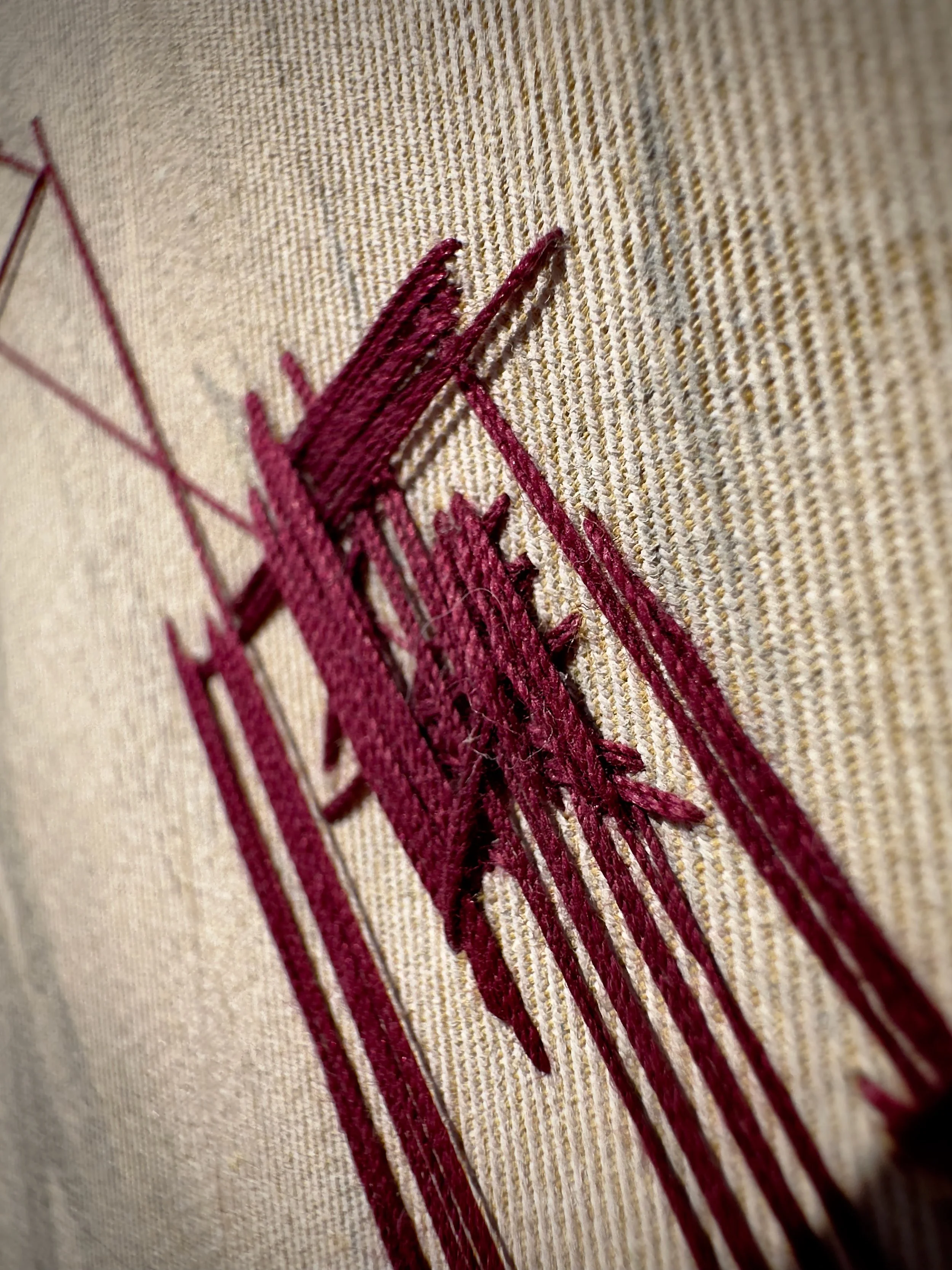 Work for sale › Burgundy Image 1 of 2 Image 2 of 2 Burgundy £100.00 Original work. Portrait orientation. Paint and thread on canvas. W32cm X H60cm Add To Cart Added! Original work. Portrait orientation. Paint and thread on canvas. W32cm X H60cm